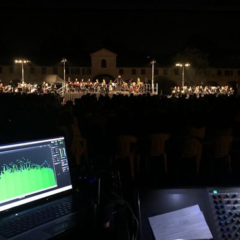 Gli standard artistici del Maestro, le location prestigiose e, a volte, inusuali e la complessità di gestione di un’orchestra così ampia e versatile, ci impongono uno studio costante di nuove soluzioni a braccetto con tecnici tra i più preparati sul mercato.