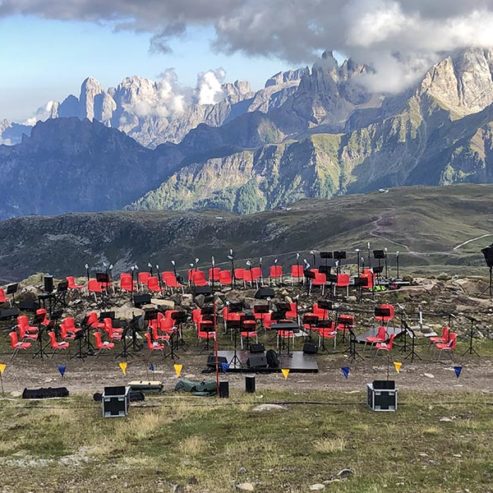 Nel 2020, grazie agli approfondimenti fatti tra marzo e maggio 2020 in termini di sicurezza e legislazione, siamo riusciti ad organizzare un evento il 13 giugno, subito prima della fine del lockdown e abbiamo avuto una ricca programmazione per tutta l’estate, con una conclusione mozzafiato, portando a suonare un’orchestra di più di 70 elementi a 2550 metri di altitudine.